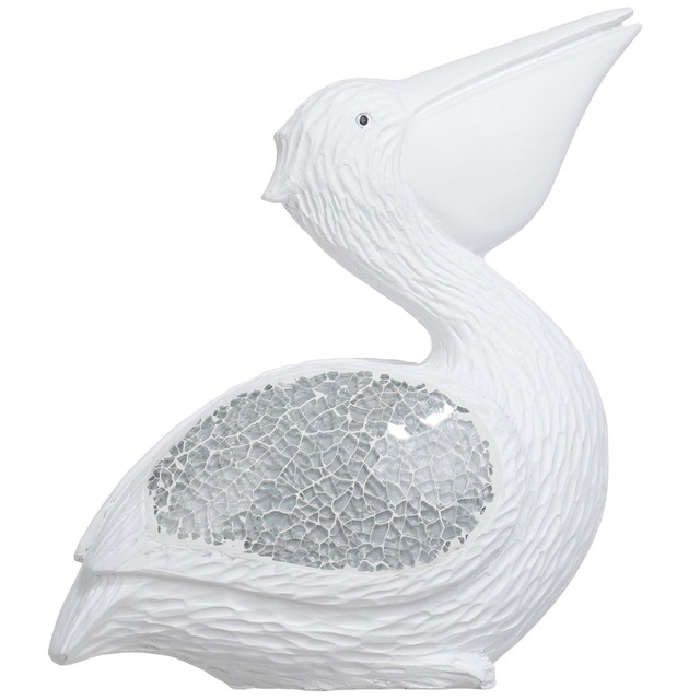 Bring a touch of coastal charm to your home with our 8.5 in Mosaic Sitting Pelican Figurine. This beautifully crafted piece features a detailed design, perfect for adding a seaside vibe to any room. Its compact size makes it ideal for shelves, mantels, or tabletops. Whether you're a beach lover or simply looking to enhance your decor, this pelican figurine is a delightful addition to your home. Measures approximately 8.5 in x 7 in x 3 in.
