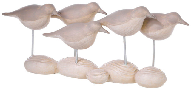 Add a coastal touch to your home with this shorebirds figurine. Measuring approximately 11 in x 3 in x 5.5 in, it features a group of detailed shorebirds perched on a sturdy base. Perfect for shelves, mantels, or tabletops, this piece brings a calm, seaside feel to any indoor space.