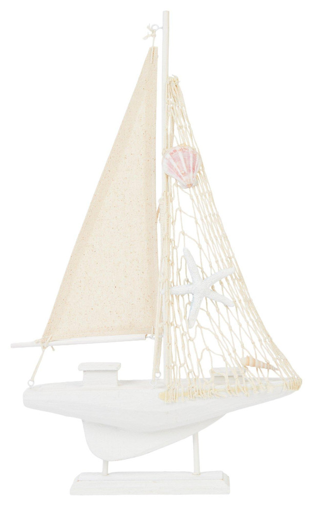 Bring coastal charm to your space with this decorative sailboat accent. Measuring approximately 6.5 in x 3 in x 18 in, it features a classic boat design with a starfish detail. Ideal for shelves, mantels, or tabletops, this lightweight piece adds a beachy touch to any room.