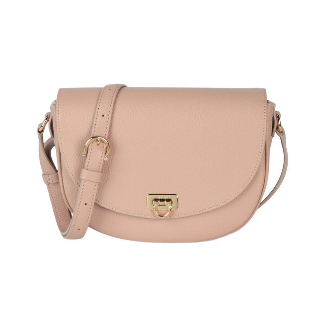 Defined by clean lines and the signature Gancini buckle, this crossbody bag by Ferragamo is made to move with you and enhance any outfit. Features tuck or push closure, one interior slip pocket, gold-tone Gancini hardware, pebbled finish and one adjustable crossbody strap. Measures: Length 8.25 in. x Width 2.3125 in. x Height 6.75 in. Strap drop: 20.5 in. Made in Italy with 100% calfskin leather. Specialist clean only.