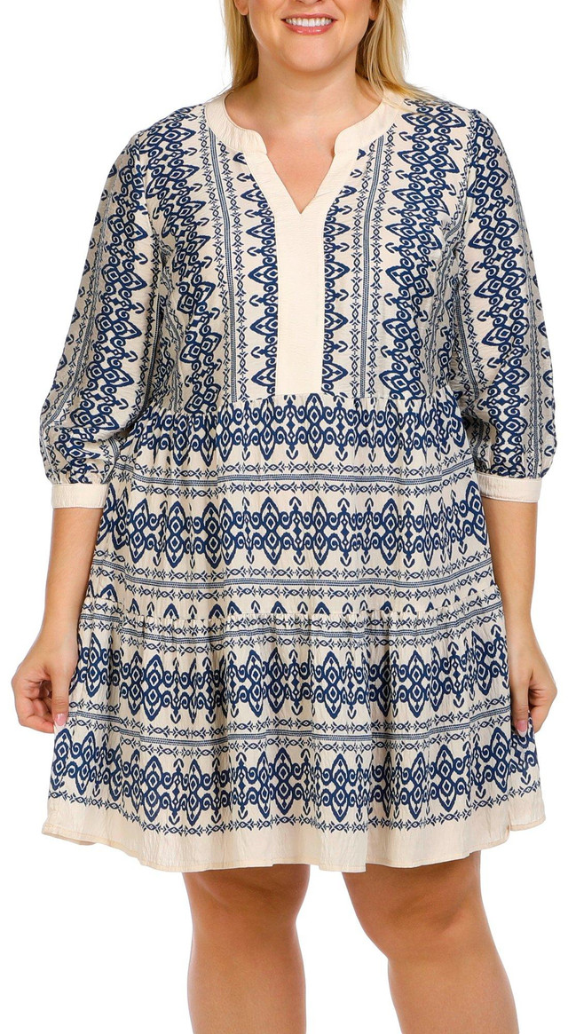 Discover casual elegance with this knee length dress, featuring a chic print design on soft lightweight fabric, a split neckline and a relaxed fit. Perfect for dinner out or weekend shopping trips, this dress effortlessly combines comfort and style. Fabrication is 80% Rayon, 20% Nylon. The dress length measures approximately 39 in.