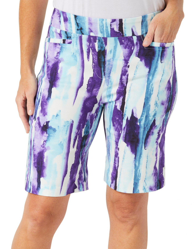 Upgrade your casual wardrobe with these Women's 10 in Print Stud Bermuda Shorts. Featuring a stylish print, pull-on waistband, front pockets, and chic stud accents at the hem, the 10-inch inseam offers a flattering, comfortable fit for everyday style.