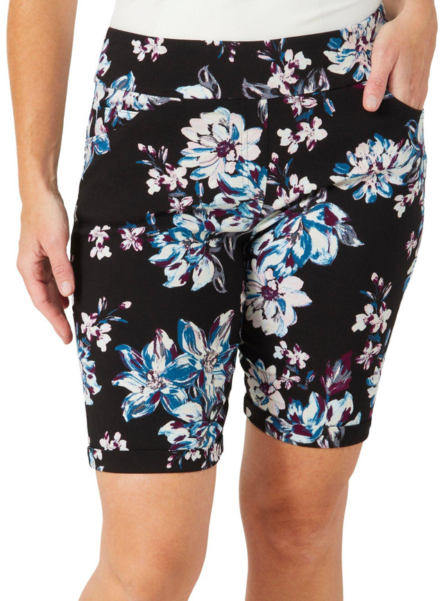 Bring a pop of personality to your everyday look with these printed Bermuda shorts, featuring a comfy elastic waistband and classic 5 pocket design. The bold pattern adds playful charm, while the relaxed fit keeps things effortlessly cool, perfect for sunny days and standout style. Fabrication 77% rayon, 20% nylon, 3% spandex.