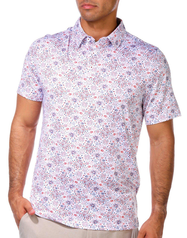Stay cool and patriotic in the Madeflex Short Sleeve Polo Tee. Featuring a bold patriotic print, this performance ready polo is built with moisture wicking fabric, UPF sun protection, and flexible stretch for all day comfort. Whether you're on the move or enjoying a laid back day, it delivers style, function, and freedom in every thread.