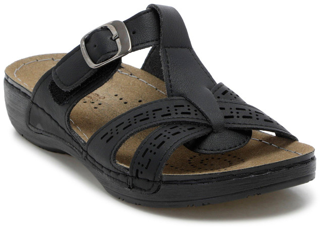 Step into comfort and style with Flexus Women's Laser Cut Buckle Slide Casual Sandals. Featuring a trendy laser-cut design and adjustable buckle, these sandals provide a customizable fit and breathable comfort. Ideal for warm-weather days, they offer a stylish yet practical option for everyday wear.