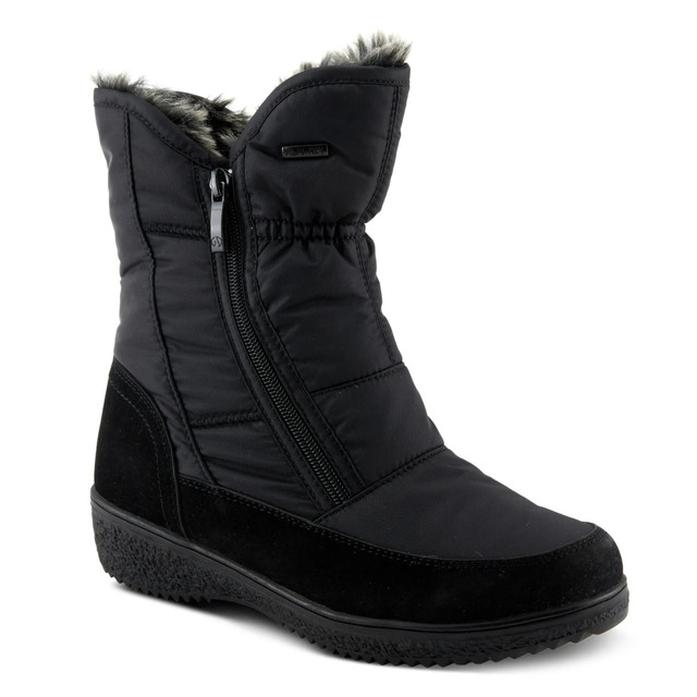 Brave the cold in style with Ernestina Bootsyour go-to waterproof winter boot. Crafted with quilted nylon and a cozy faux fur lining, this pull-on design features a convenient side zipper for easy wear. The round toe and insulated build offer warmth, comfort, and protection, making it perfect for snowy days. Stay dry, feel cozy, and look effortlessly chic all season long.