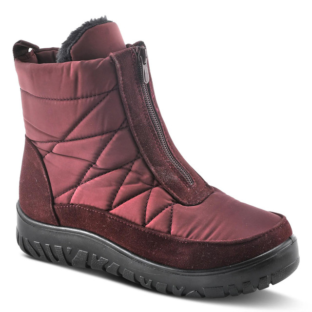 Conquer winter in the Flexus Lakeeffect Mid-Calf Boots. Designed with a classic quilted upper, waterproof protection, and warm faux fur lining, this boot features a front zipper and fold-out metal ice grip for added traction. The flexible sole and extra-treaded outsole ensure comfort and stability in snow and ice. Cozy, stylish, and built for cold-weather adventures.