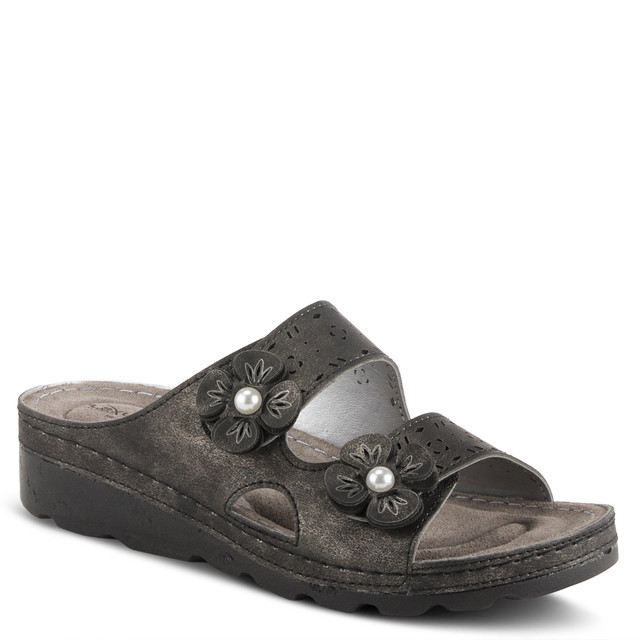 Step into feminine style with our adorable Pamola slide sandals. Featuring double hook and loop straps adorned with charming flower appliques and perforations, these sandals are both stylish and comfortable. The sliver wedge gum outsole adds a touch of elegance, while the synthetic upper and lining, leather insole, and polyurethane outsole ensure durability. With a flexible sole and padded insole, these sandals offer adjustable comfort for all-day wear. Perfect for any occasion!