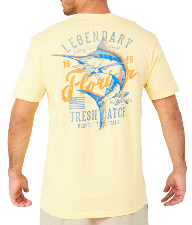 Reel in style with the Legendary Catch Tee. Featuring a bold tarpon graphic on pale yellow, this short-sleeve crew neck offers an athletic fit and all-day comfort in soft, 100% combed ringspun cotton jersey.