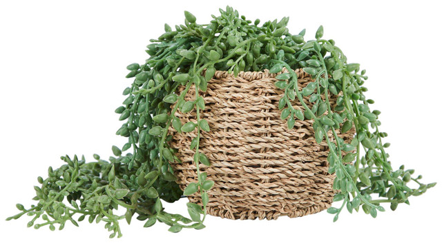 Introducing this 17.5 in Faux String of Beads Plant in a Wicker Basket, perfect for adding a touch of charm to any space. This beautiful plant comes in a rustic basket, enhancing its natural beauty. Ideal for both home and office settings, it brings a fresh and natural look to your decor. Enjoy the charm of this beautiful plant. Measures approximately 17.5 in x 7 in x 7 in.