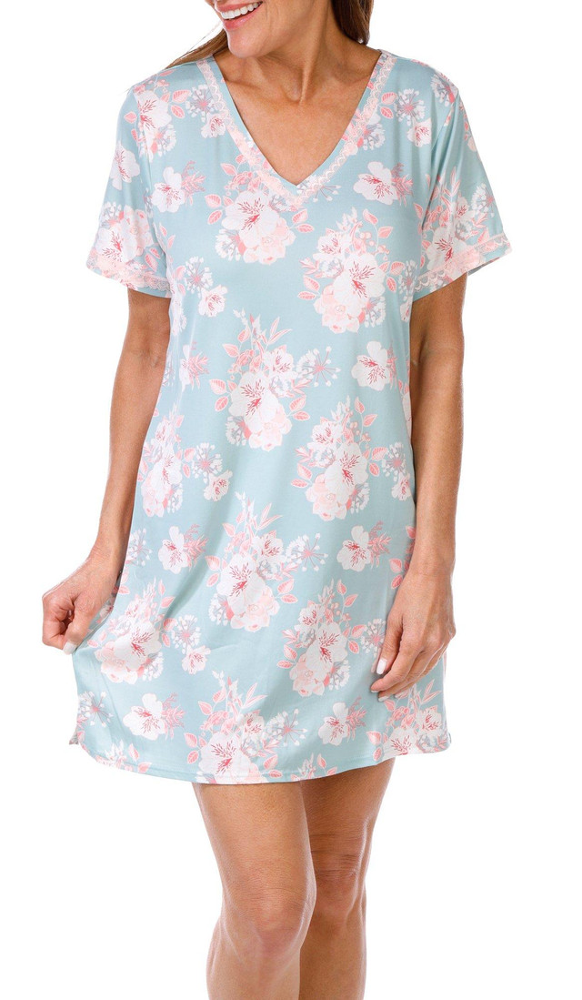 FLORA NIKROOZFlora Nikrooz Womens Short Sleeve Floral Lace Sleep Shirt