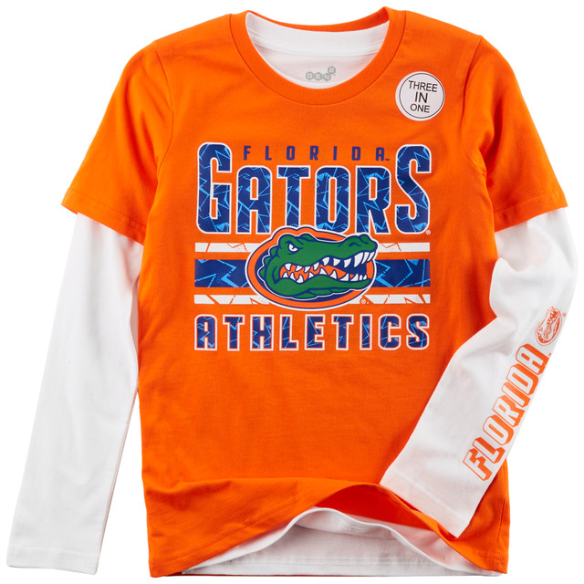 Show team pride in any season with the Big Boys 2 Piece Long and Short Sleeve T-Shirt Set. Featuring bold University of Florida Gators graphics on both tops, this versatile set includes one long sleeve and one short sleeve tee for easy layering or solo wear. Perfect for game day excitement or everyday comfort. Fabrication is 100% cotton.