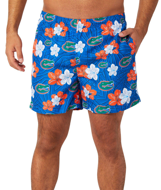Show off your team spirit in tropical style with the Florida Gators Hibiscus Swim Trunks. Made from 100% polyester with a matching polyester lining, these trunks offer lightweight comfort and quick-drying performance. Featuring a bold hibiscus print and official team graphics, theyre perfect for beach days, poolside lounging, or game day fun in the sun.