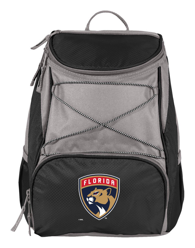 The PTX Backpack Cooler features a fully insulated interior liner that is also water-resistant, you can use it as a food and beverage tote or as an all-around activity tote. Backpack also features expandable pockets, Florida Panthers logo, and front-mounted stretch cord. Measures 11''L x 7''W x 12.5''H