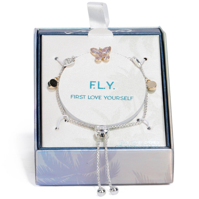 Celebrate transformation and grace with the Boxed Butterfly Charm Bolo Bracelet. Featuring two toned charms accented with pave gemstones and rhinestones on a silver bracelet, it offers delicate sparkle and symbolic beauty. The bolo design allows for easy adjustability, ensuring a comfortable and secure fit for any wrist. Beautifully packaged in an elegant box, perfect for gifting or as a personal keepsake.