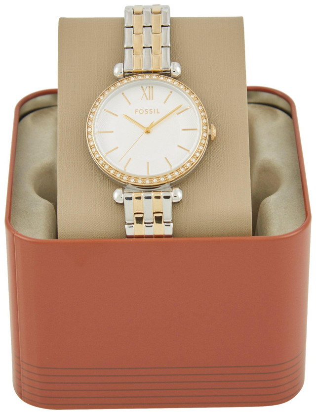 This 36mm watch combines a sophisticated white matte dial with a sleek two-tone stainless steel bracelet in silver and gold. The round case and classic design make it a timeless addition to any wardrobe. Whether for a special occasion or everyday wear, this piece offers lasting style and functionality.