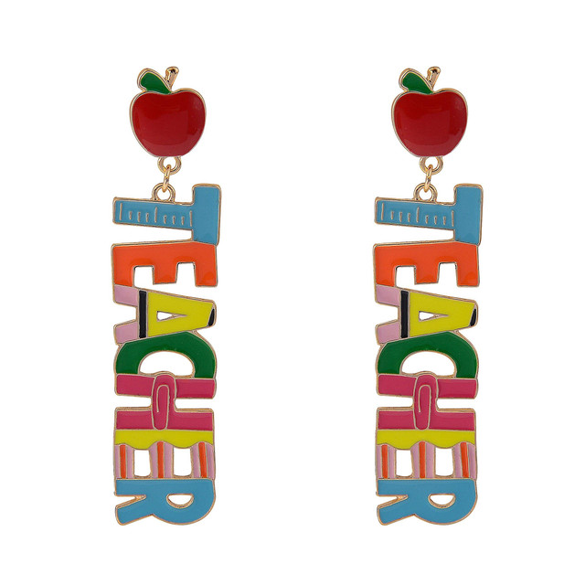 Celebrate educators in style with these bold and playful TEACHER drop earrings, topped with a red apple stud. Bright enamel colors and fun design make them the perfect gift for any proud teacher!