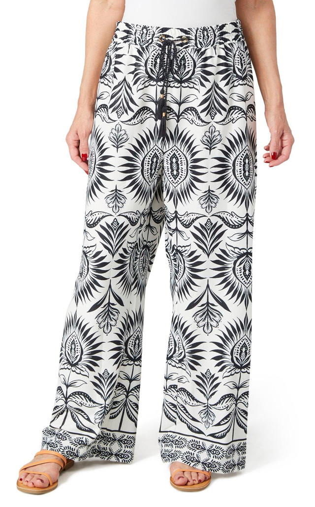 Introducing our Women's Boarder Print Pants, made from 100% polyester for a lightweight and comfortable feel. These pants feature a chic floral print that adds a touch of elegance to your wardrobe. The drawstring elastic waistband ensures a perfect fit, while the flowy leg fit provides a relaxed and stylish look. With a 27-inch inseam, these pants are perfect for any casual outing or relaxed occasion.