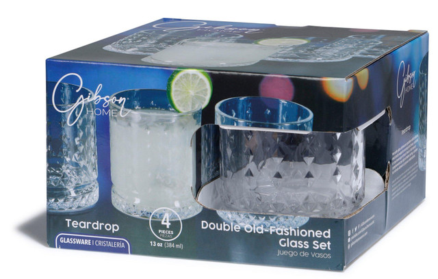 This 13 Ounce drinkware set from Gibson Home is designed with a teardrop shaped embossed exterior that sparkles with brilliance and clarity. Perfect for serving iced teas, cocktails, or any beverage of your choice, each piece complements any style of table setting. Whether you are celebrating with friends or enjoying a casual drink, this set will add a special touch to the occasion. Durable glass construction is dishwasher safe for easy cleanup.