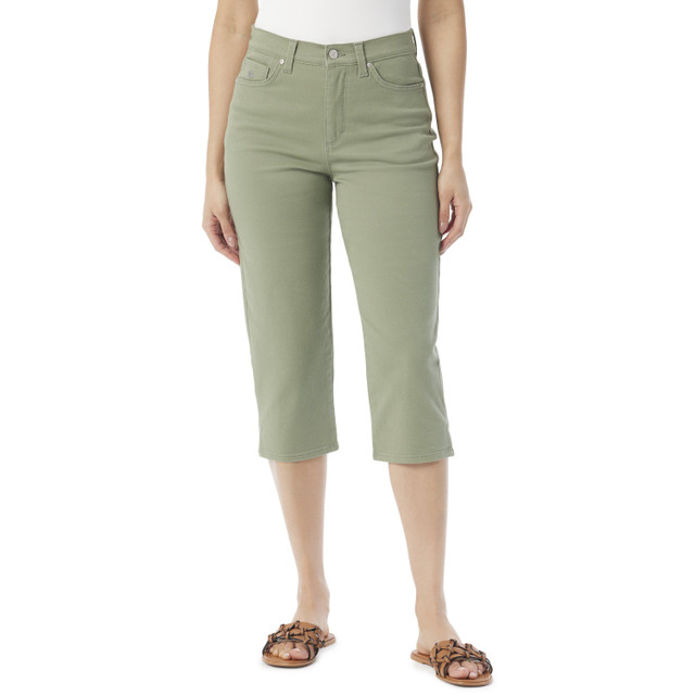 Amanda capris by Gloria Vanderbilt provide comfort, style, and a flattering fit. This pair of capris features a single button waist closure, casual 5 pocket styling, and a solid color design that allows for effortless matching. Inseam is approximately 20 inches.