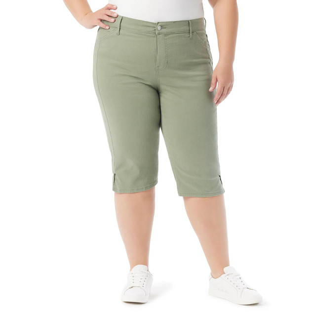 The Plus Dahlia Skimmer Capris feature front and back pockets, a 17-inch inseam, and a flattering slimming design. Perfect for warm-weather days, these capris offer comfort and style in a versatile fit. Fabrication 59% cotton, 28% polyester, 12% viscose, 1% spandex