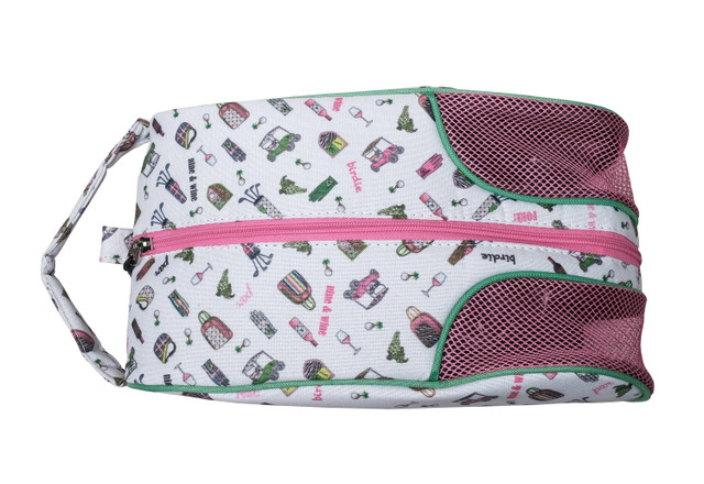 Our chic shoe bags are designed for women who want a stylish solution for shoe transport. This fashionable bag offers extra protection for your footwear, ensuring they stay in pristine condition. Perfect for golf, pickleball, tennis, or the gym, or travel, its sturdy construction and eye-catching designs make it a must-have accessory. Keep your shoes safe and make a statement with this stylish and functional shoe bag. Measures 15 in. x 7 in.