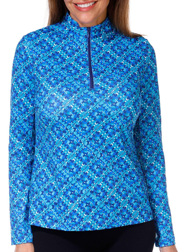 This women's active Kate mock top features a vibrant print with long sleeves and a zip placket neckline. Designed for performance it offers moisture wicking, quick dry, fabric flatlock stitching, and four way stretch for comfort and ease during any activity. Fabrication 88% polyester, 12% spandex