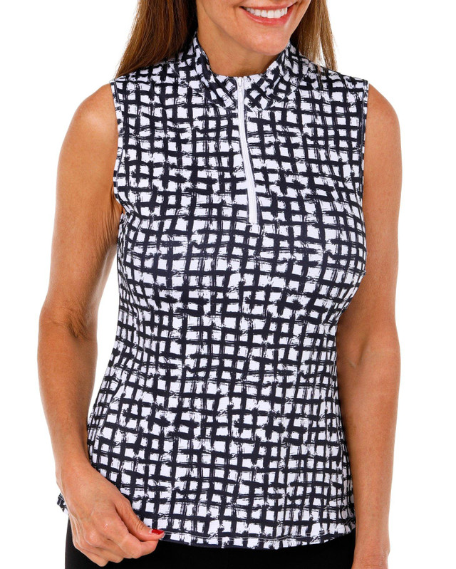 Stay cool and stylish in this womens active mock neck tank top. Designed with a vibrant print and quarter zip neckline, it offers 4 way stretch, moisture wicking fabric, flatlock stitching, and cooling technology for all day comfort during workouts or casual wear. Fabrication 88% polyester, 12% spandex