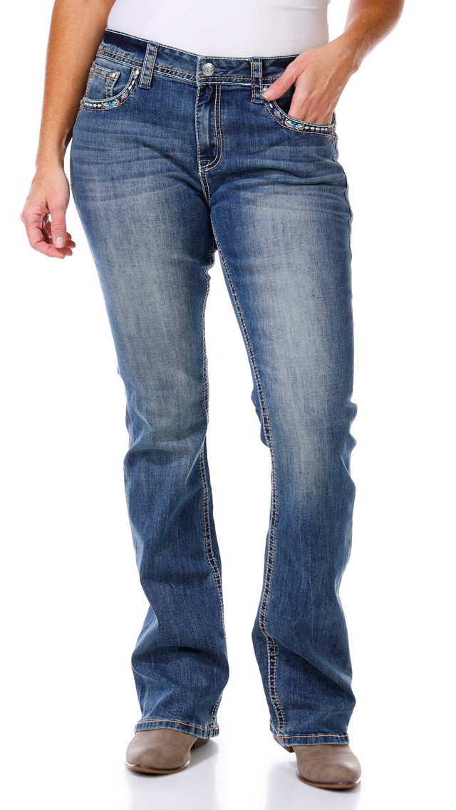 Grace in LA Womens Rainbow Cow Pocket Boot Cut Jeans