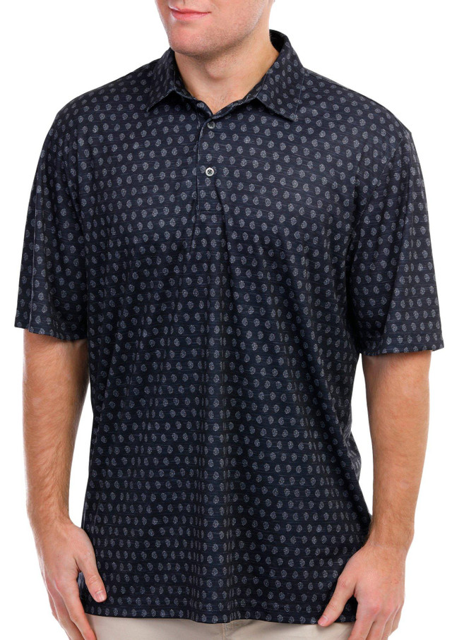 Introducing the Men's Short Sleeve Stellar Golf Polo Shirt, crafted from high-quality polyester for a comfortable and durable fit. This stylish polo features a striking print, a button placket, and a classic collared neckline. Designed with performance stretch, moisture-wicking technology, and UPF sun protection, it ensures you stay cool, dry, and protected on the golf course. Perfect for any golfer, this polo combines style, functionality, and comfort for your best game yet.