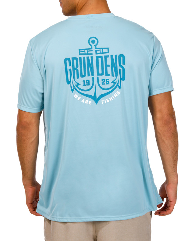 This mens short sleeve performance tee is made with lightweight, stretchy fabric that offers sun protection, moisture wicking, and antimicrobial properties. Designed for active comfort and freshness in any setting. Fabrication is 100% polyester.
