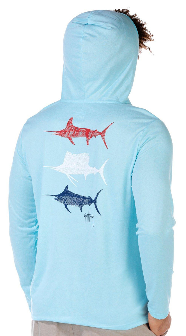 The Long Sleeve Hooded Performance Shirt for men is made to move with you. Featuring brand script on the chest and a bold graphic design on the back, this lightweight layer includes a hooded neckline, long sleeves, moisture wicking, and performance stretch for all day comfort and versatility. Fabrication 100% polyester