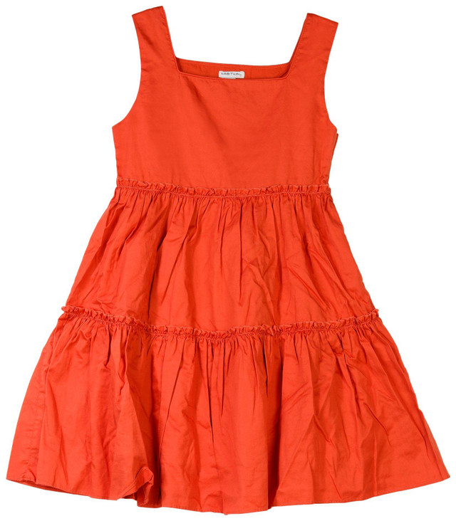 Elevate her everyday look with this Big Girls Sleeveless Tiered Baby Doll Dress. Crafted in a solid color with a fully lined interior, it features thick shoulder straps and a flowing tiered silhouette for timeless charm and comfort. Perfect for school days, weekend outings, or family gatherings. Machine washable for effortless care. Fabrication is 100% cotton.