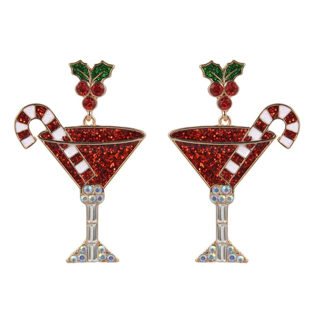 Add a splash of holiday cheer with these Candy Cane Margarita Earrings. Featuring a festive cocktail design with candy cane accents and secure post back closures, they are perfect for seasonal parties or gifting with a playful twist.