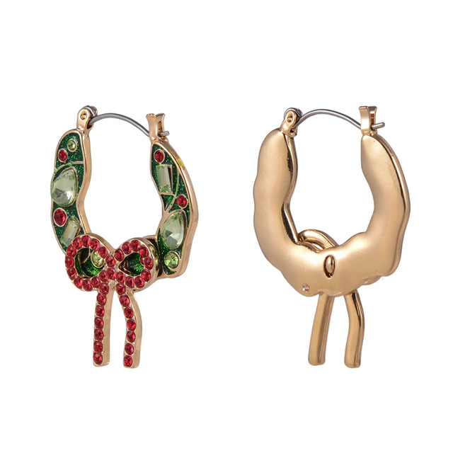 Add festive flair to your look with these Christmas Wreath Hoop Earrings. Designed with miniature wreaths featuring green accents, red bows, and sparkling details, they bring holiday cheer to any outfit.
