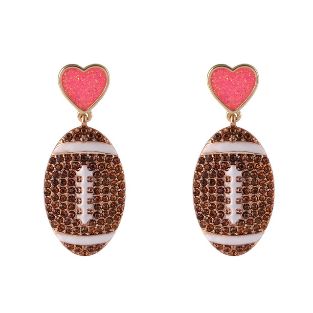 Show your team spirit with a touch of sparkle in the Rhinestone Football Dangle Heart Stud Earrings, where sporty meets sweet in the most charming way. Each earring features a glittering football nestled inside a heart-shaped frame, capturing the thrill of game day and the joy of cheering from the sidelines. Whether you're tailgating with friends or celebrating a win, these earrings add a playful shimmer that speaks to your love of the sport and your flair for fun.