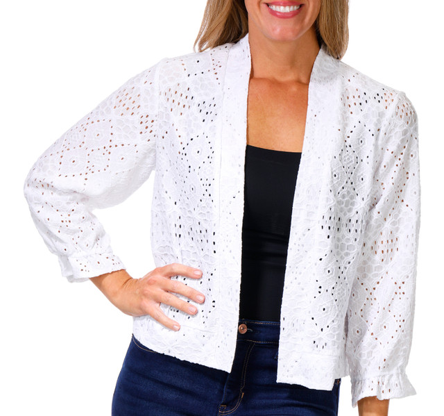 The Womens 3/4 Sleeve Jaquard Cardigan delivers polished comfort with a textured knit finish. Soft fabric and an elegant drape create a flattering layer for work or casual wear. Designed to pair easily with dresses or tops, this cardigan adds warmth and refined style for everyday outfits and seasonal transitions. Fabrication 98% polyester, 2% spandex.