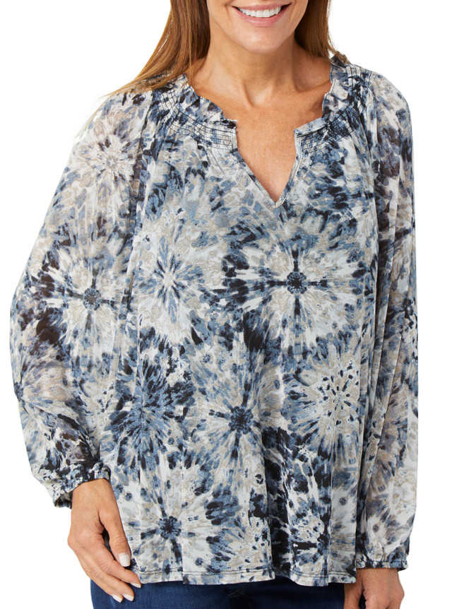 Stand out in this womens top featuring a bold zebra pattern and sheer long sleeves with soft lining and elastic cuffs. Lightweight and breathable it offers a stylish fit perfect for day to night wear. Designed to blend comfort with statement style. Fabrication is 95% polyester and 5% spandex.