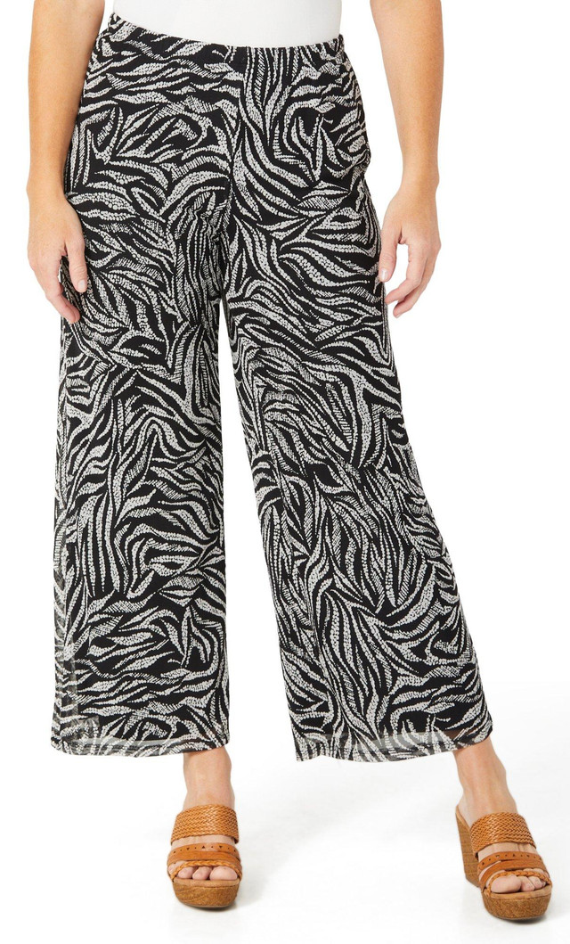 Make a statement with the Womens Mesh Zebra Pants. Featuring a comfy pull-on waistband, 27 inch inseam, and a flowy fit, these ankle-length pants layer a bold zebra print mesh over a sleek silhouette. Fabrication 95% polyester, 5% spandex