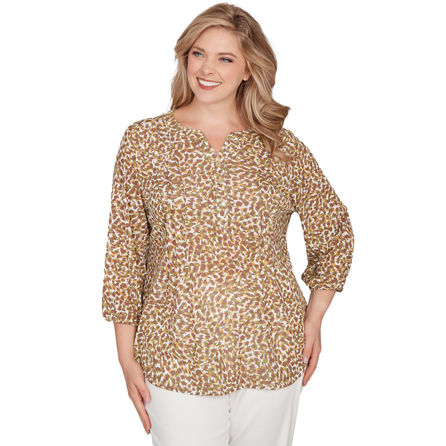 Bring boho charm to your wardrobe with this Hearts Of Palm peasant top. Featuring a relaxed fit, 3/4 sleeves, and a painted print on soft slub fabric, this stylish piece offers effortless comfort and eye-catching appeal for everyday wear. The top length measures 31 in. Fabrication 57% polyester, 43% viscose.