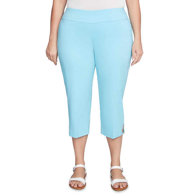 These versatile capris are your secret style weapon. The tummy panel smooths and flatters your midsection, while the stretchy fabric allows you to move freely throughout your day. The chic bead detail add a touch of edge to elevate any outfit. Fabrication 78% rayon, 19% nylon, 3% spandex.