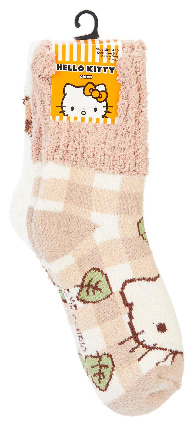 Add festive flair to fall wardrobes with the 2 Pk Harvest Cozy Crew Socks. Featuring soft textures and playful Hello Kitty designs, each pair combines seasonal spirit with all day comfort. Ideal for everyday wear or spooky season lounging. Fabrication is 98% polyester, 2% spandex. Sock size 9-11, Shoe size 4-10.
