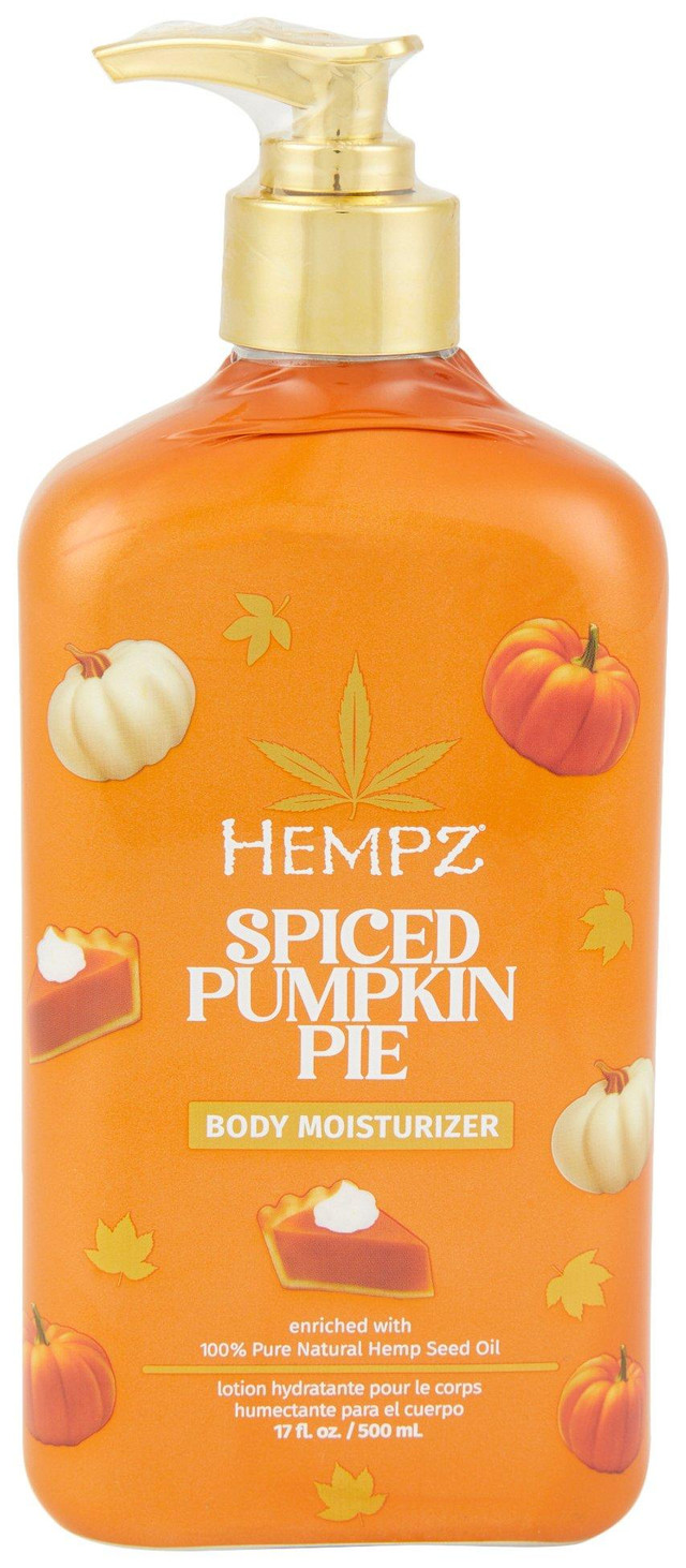 Celebrate the season with the 17 oz Spiced Pumpkin Pie Body Moisturizer enriched with 100% pure natural hemp seed oil, formulated with essential fatty acids and key amino acids to help replenish hydration and support the skins natural barrier. Features a non greasy fast absorbing texture for smooth nourished skin. Ideal for daily use.