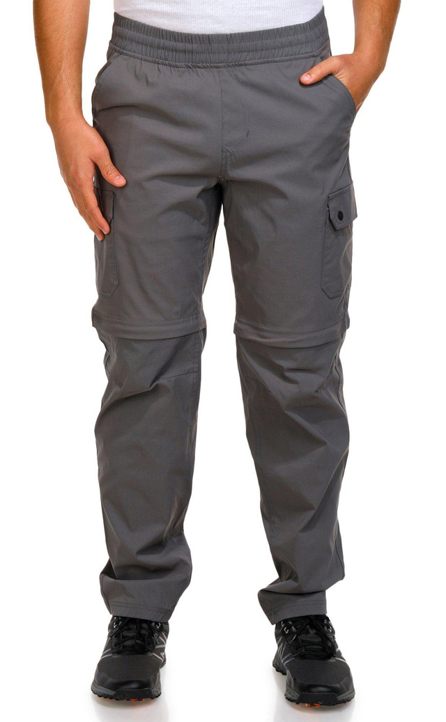 Introducing our Men's Tech Twill Zip Off Pants, crafted from a blend of nylon and spandex for a comfortable and flexible fit. These versatile pants feature a stylish solid color, an elastic waistband, side seam, cargo, and back pockets, and a zip-off feature to convert them into shorts. With a 31-inch inseam, they are perfect for both outdoor adventures and casual wear, combining functionality and style effortlessly!