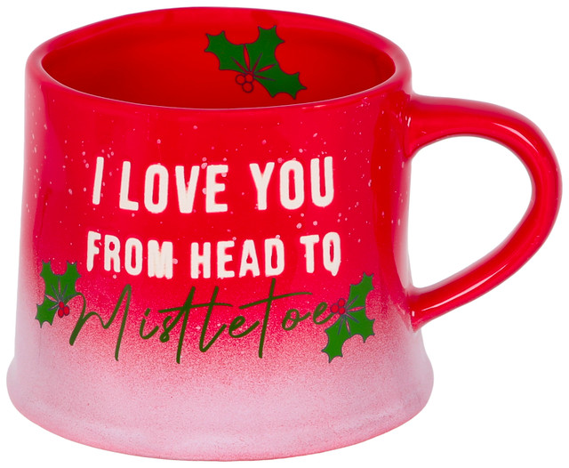 Show your love this season using the 17 oz Mistletoe Mug. Featuring a romantic holiday script, this ceramic mug adds a playful twist to your morning brew or evening tea. Perfect for Christmas or year-round.