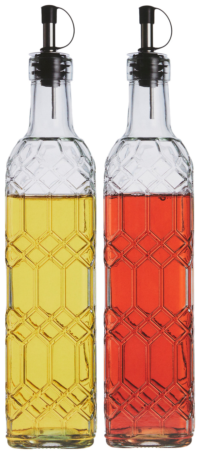 Home Essentials 2 Pk 17 oz Glass Oil & Vinegar Bottle Set