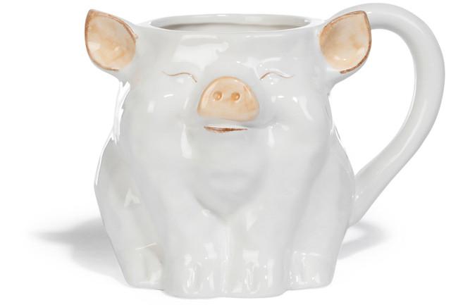 This happy pig figural mug from the Farmyard Collection adds a cheerful touch to any morning routine. With its playful design and charming expression, this mug brings personality and warmth to the table. Perfect for coffee, tea or hot cocoa. Mug holds 20 OZ and measures approximately 5 in x 5 in, excluding handle.