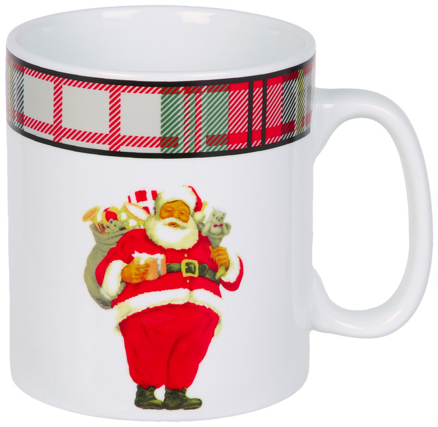 Add festive delight to your morning routine with the 30 oz Christmas Classic Santa Coffee Mug. This festive mug features a plaid border and classic Santa design. Perfect for enjoying hot cocoa, coffee or seasonal beverages all winter long. Fabrication is 100% ceramic. Holds 30 oz.