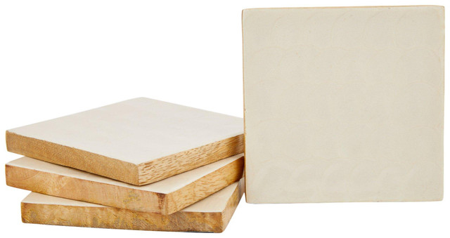 Add a touch of elegance to your table with these wooden coasters featuring a white mother-of-pearl-inspired finish. Designed for both style and function, this set of four is lightweight, easy to clean, and perfect for protecting surfaces from spills and heat. Their sophisticated design makes them a great addition to any home décor.