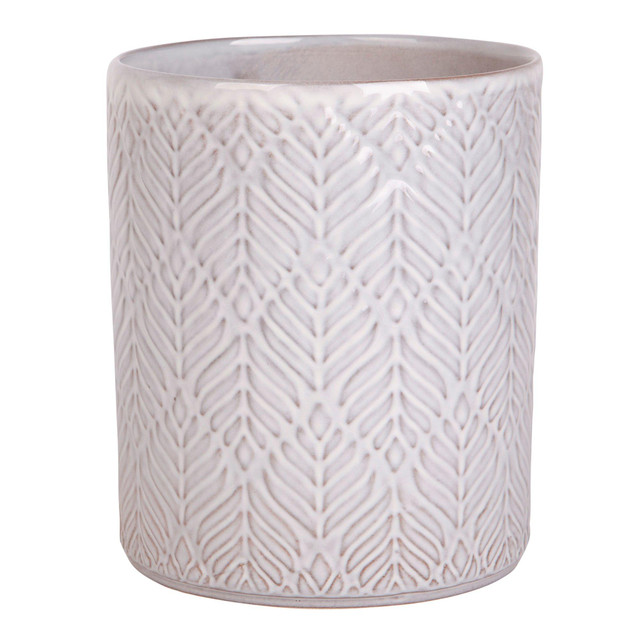 Add a touch of elegance to your kitchen with the 7-inch Carved Leaf Utensil Holder. Crafted from high-quality ceramic, this holder features a stylish leaf design that enhances any decor. Its sturdy build ensures durability, while the intricate pattern adds a sophisticated charm.